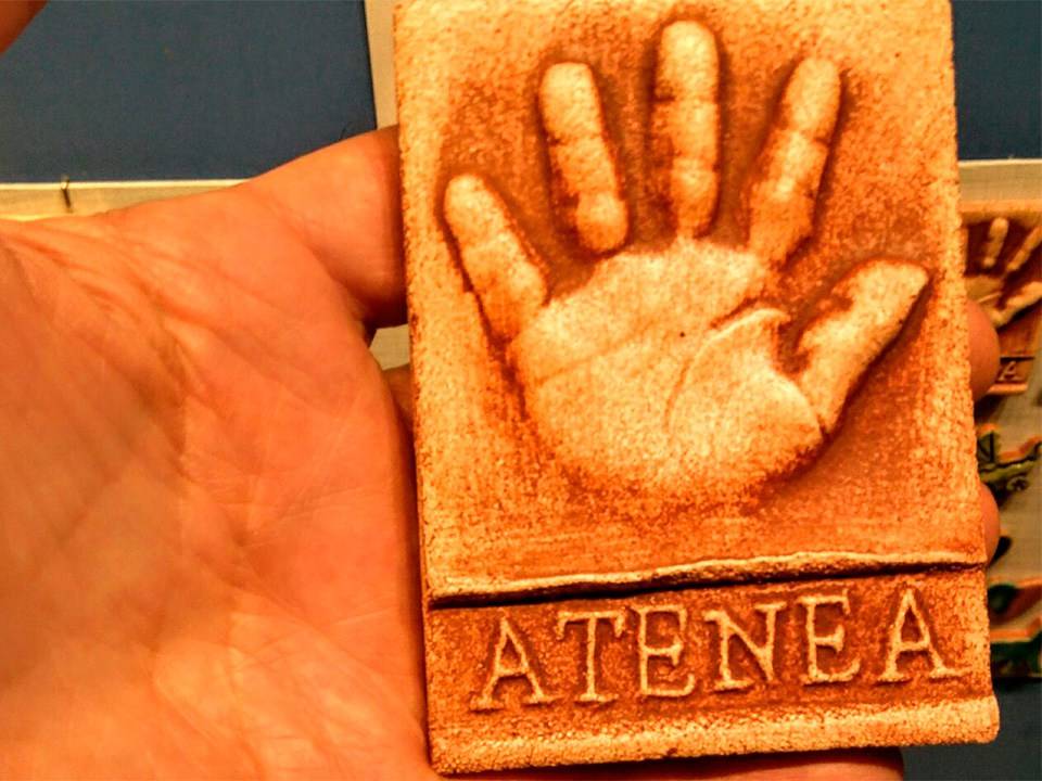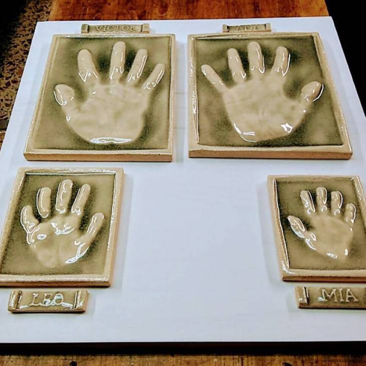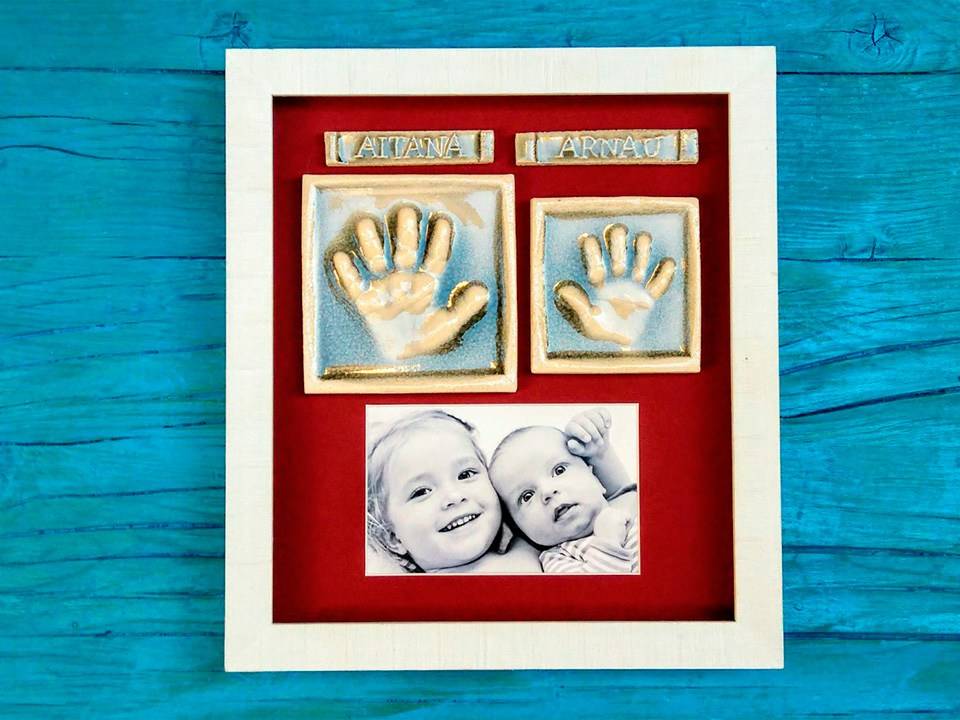 Con la impresión de la huella de la mano o el pie del bebé en arcilla, conseguimos el molde cerámico para reproducir sus huellas en alto relieve las veces que necesites, para regalar a los abuelos o para regalo de bautizo y regalo de comunión.
