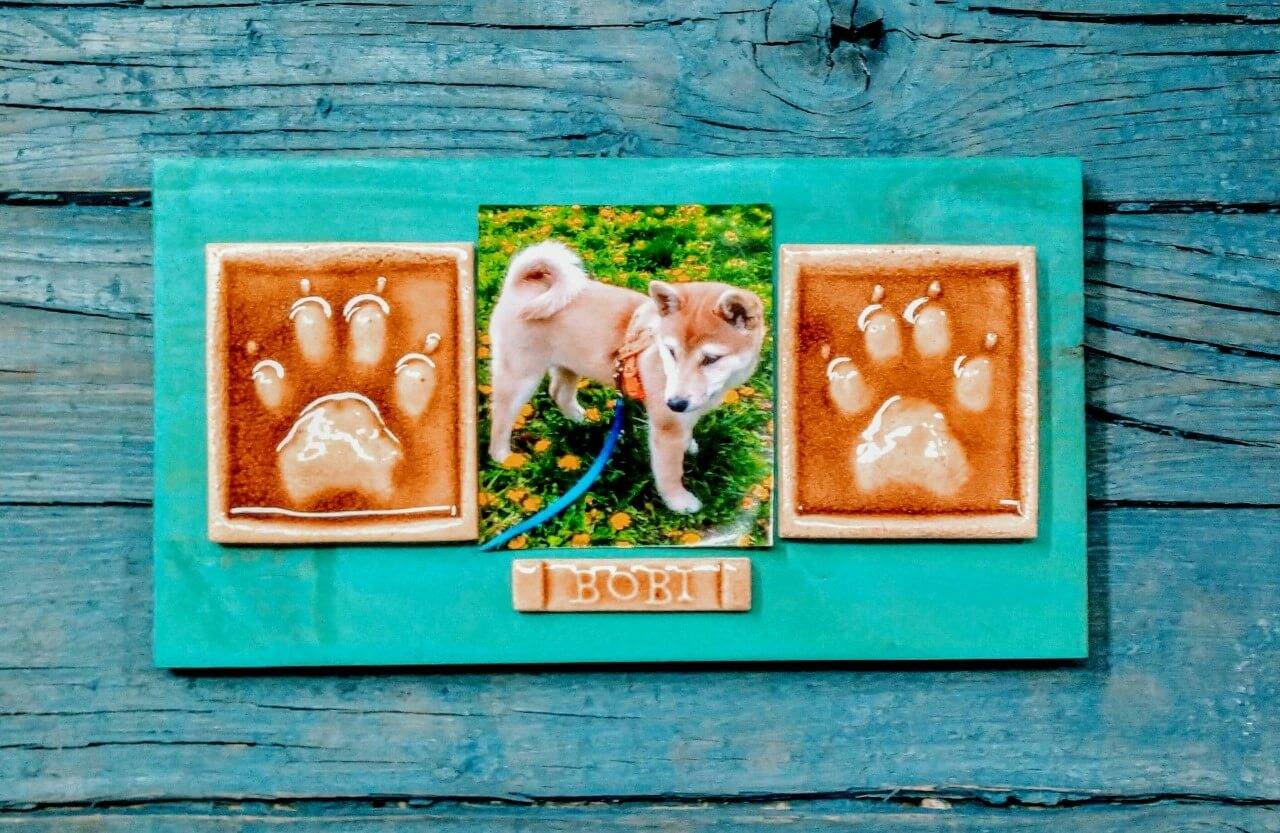 huellas de perro en ceramica con nombre y foto