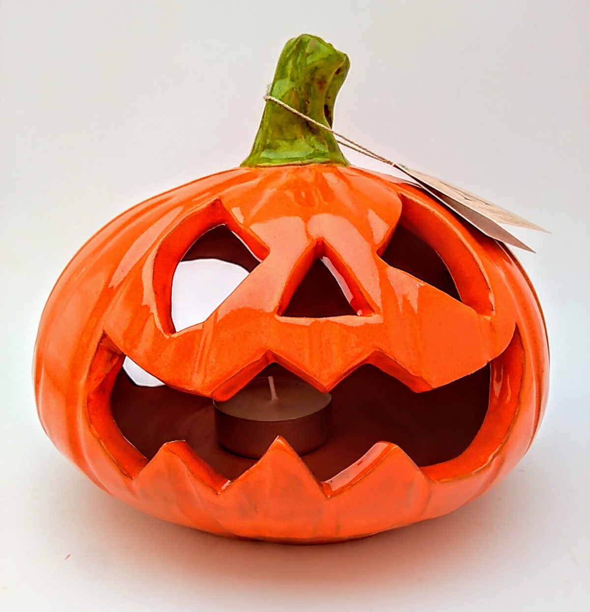 Calabaza Halloween cerámica, ideal para decorar tu casa y crear un ambiente de fiesta con los niños o amigos.