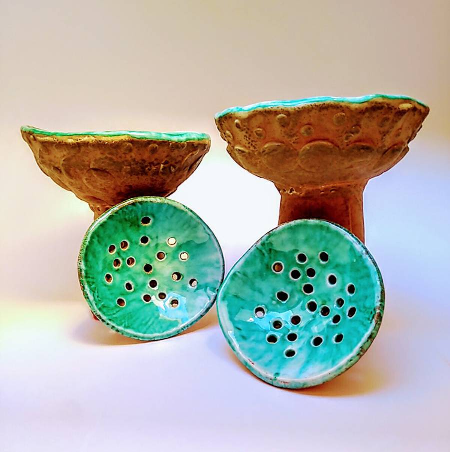 Os presentamos los Sahumerios originales para limpiar la casa que realizamos en nuestro Taller. Las medidas son 16 x14 cm y los cuencos están hechos en arcilla roja y acabados con engobes y esmaltes cerámicos para limpiarlos bien.